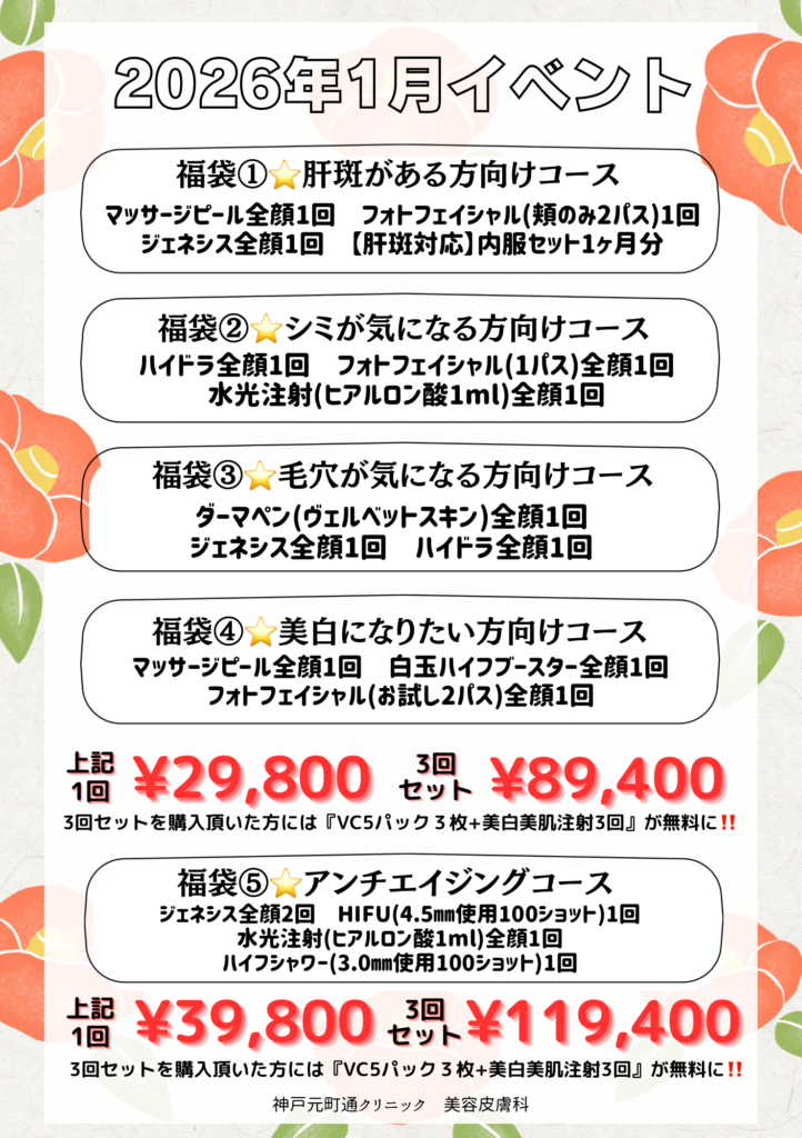さて、去年も大人気だった福袋ですが、2026年は少し趣旨を変えまして、いろいろな施術を少しずつ試せるコースをご準備いたしました💕